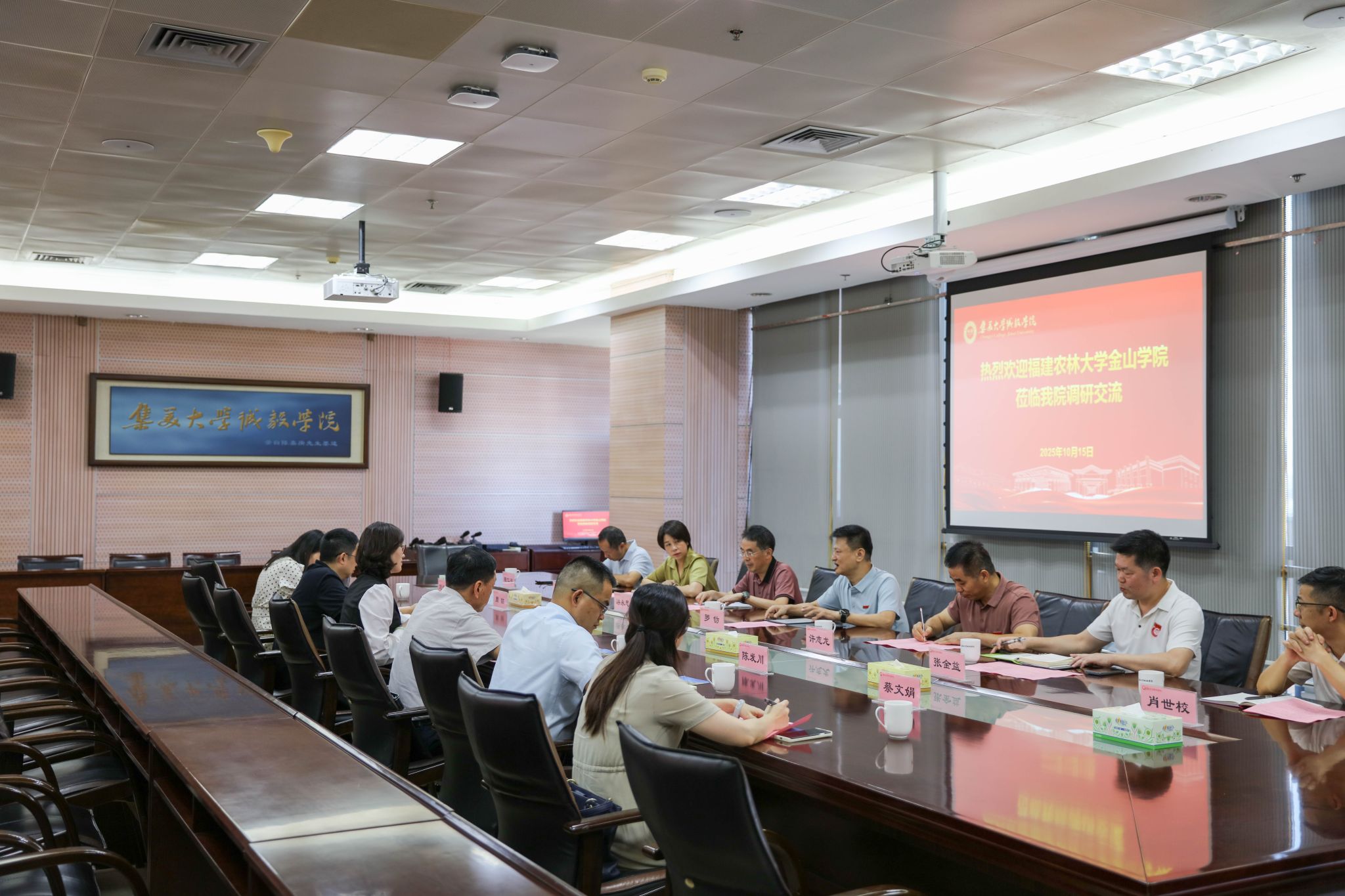 10月15日下午,福建农林大学金山学院党委常务副书记陈毅、主持工作副院长坚瑞一行来我院调研交流。院党委书记罗钫、院长许志龙,学院相关部门负责人参加座谈。